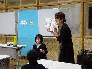 児童は手話を使って、会話をしている人たちがいることを実感していました。自分たちが手話を使って、会話しようとすると、なかなか大変なことに気付きました。