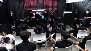 ブラックパネルシアターを行いました。図書館ボランティアの方にも協力していただきました。初めての試みだったので、たくさんの応募があり、児童は上映会を楽しんでいました。