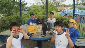 今日は1・2年生の遠足の予定でしたが、あいにくの雨のため、予定を変更することになりました。体育館で友達とお弁当を食べました。いつもとは違うメンバーで美味しいお弁当を食べられたのが嬉しかったようです。