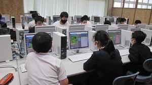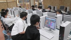 写真はパソコンクラブの活動の様子です。自分のペースでプログラミングに親しみ、楽しんでいました。