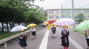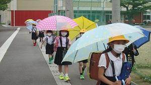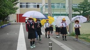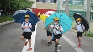 コロナの感染対策と、熱中症対策のために、本校では登下校の傘差しを推奨しています。