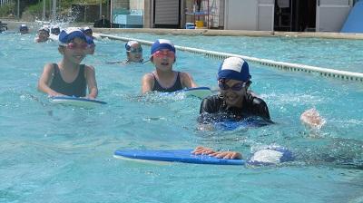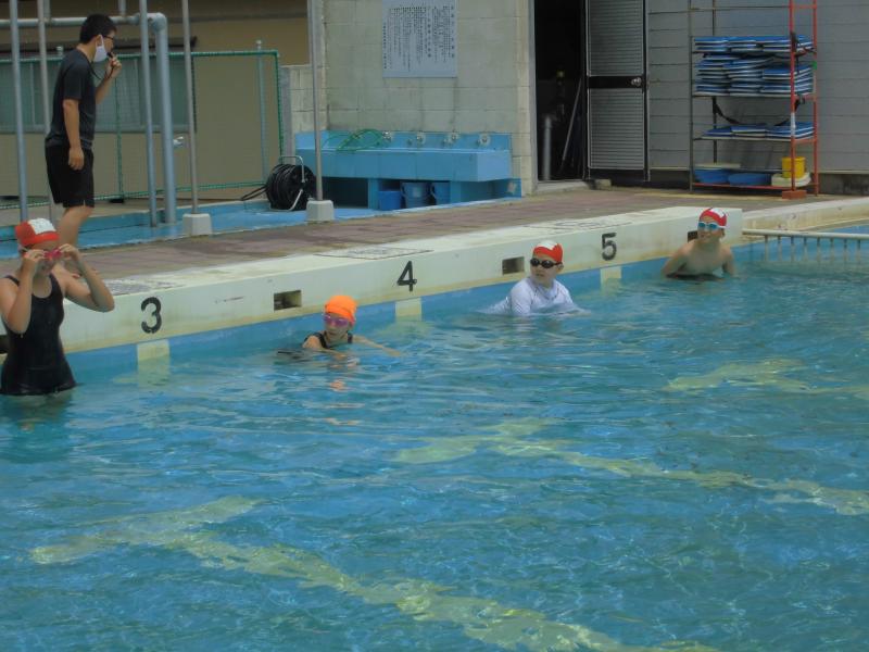 代表の児童が模範泳を泳ぎ、そのあとみんなで泳いだり、流れを作ったりしました。
