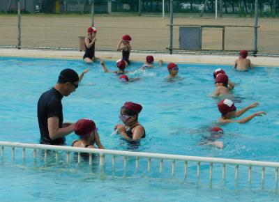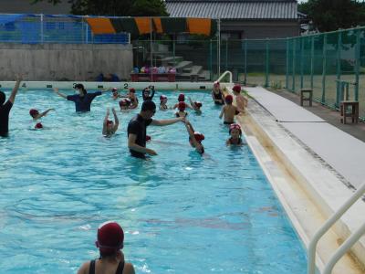今週は、プールの授業にクラブパレットから水泳の先生に来ていただいています。