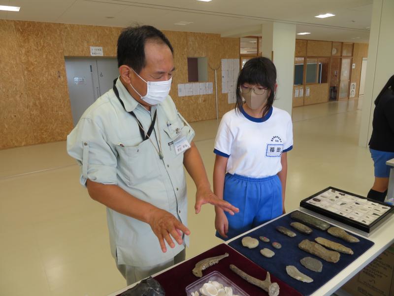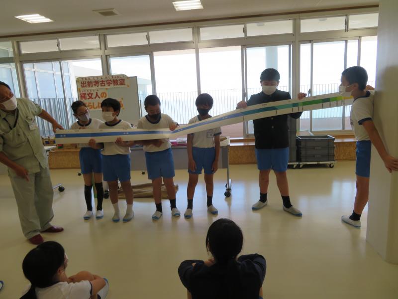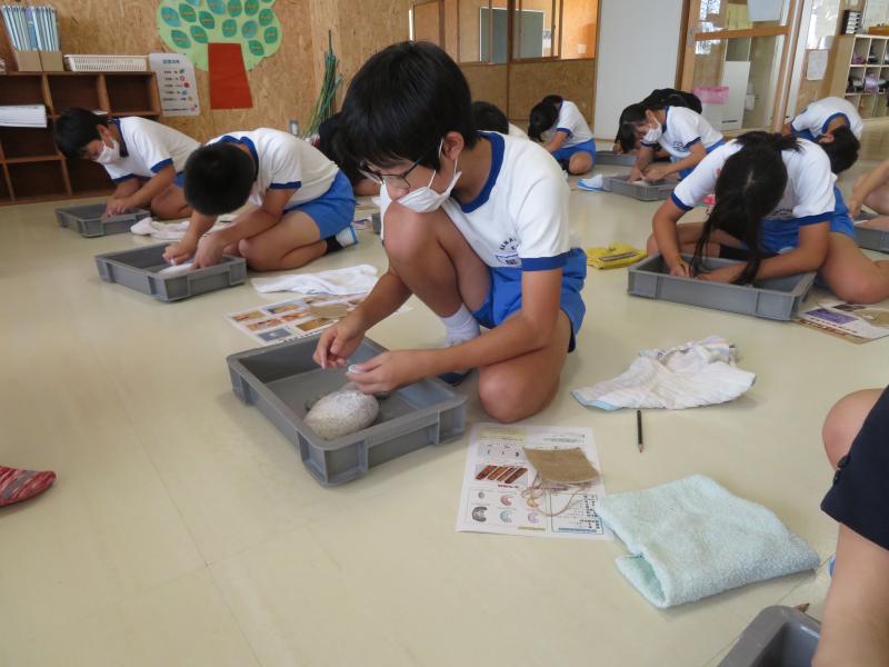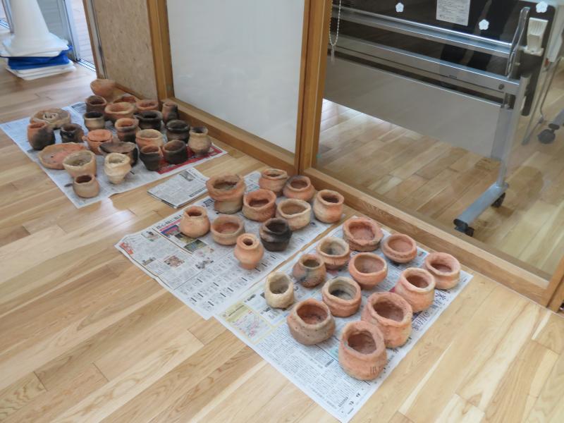 3・4限目に土器焼き体験・勾玉づくりを行ないました。7月につくった自分だけの弥生土器を焼き上げ、完成させました。焼き上げている間にクラスに分かれて勾玉をつくったり、縄文時代の暮らしや道具を振り返ったりしました。当時の生活の難しさを学ぶ良い機会となりました。