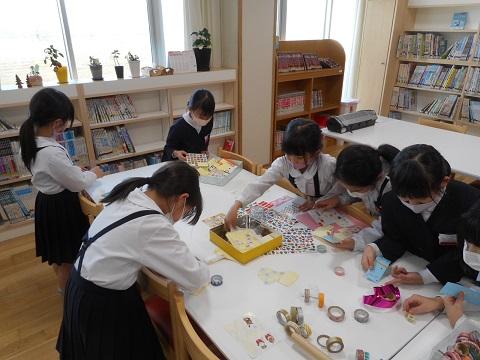 しおりがプレゼントされました。しおりは自分で色を選んだり、好きなシールを