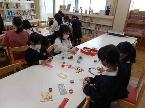 はったりして完成させていきます。どのしおりも素敵で、みんなニコニコ笑顔でした。