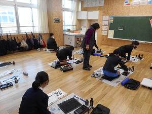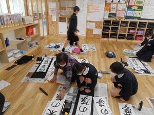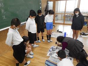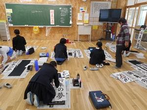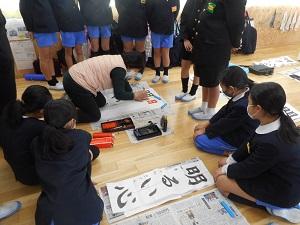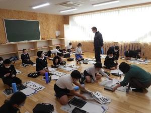 地域の3名の方を講師としてお招きして、3~6年生が書き初め練習を行いました。