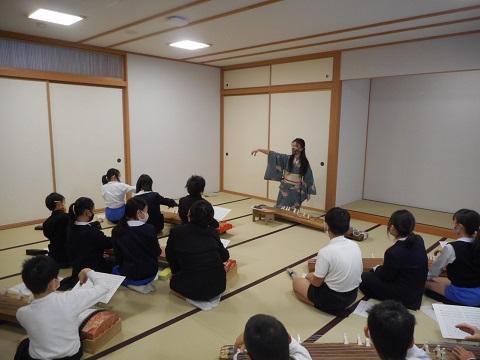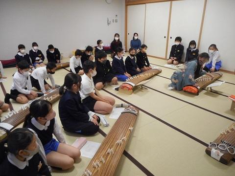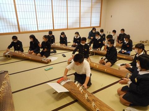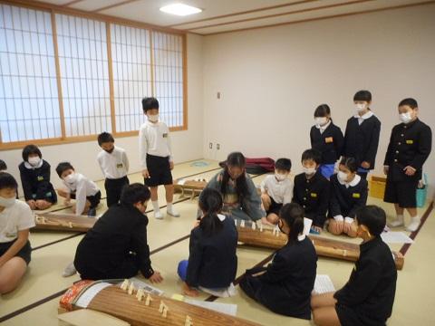 今日の1,2時間目に4年生が七塚小学校2階の礼法室でお琴体験をしました。