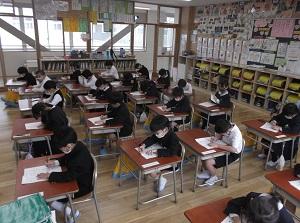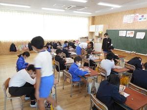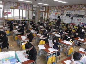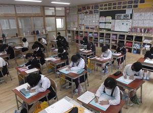 落ち着いた雰囲気の中で,集中して書き上げることができました。どの子も2学期学習したことや冬休みに練習したことを生かして取り組んでいました。惜しくも入選しなかった子の中にも,見ごたえのある素晴らしい作品がたくさんありました。
