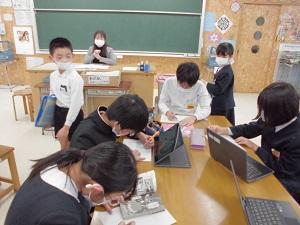 6年生が中心となって、イラストのかき方についてアドバイスしていました。