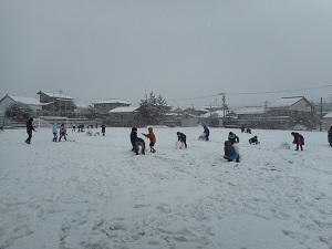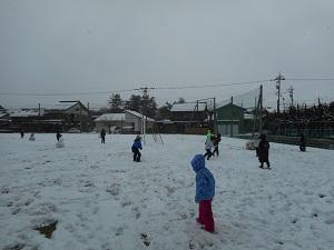 お昼休みには低学年が雪合戦。雪や寒さに負けないたくましい七塚っ子でした。