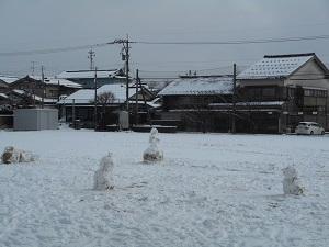 4限目には4年生がみんなで雪だるまづくり。大小様々な雪だるまができました。