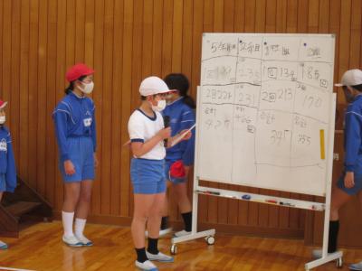 今までの練習の成果を発揮し、協力して取り組んでいる素敵な姿がたくさん見られました。どのクラスも自己ベストを更新することができ、跳びあがって喜ぶ姿も見られました。みんな頑張りました。