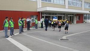 今日は雨の登下校でした。しっかりとカッパを着て、学校の1階ホールに集合し、方向ごとに先生に付き添われて下校しました。