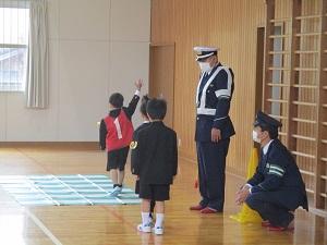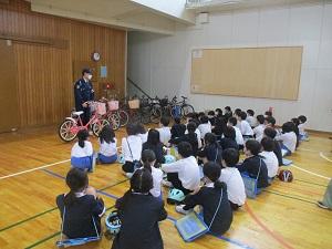 26日、1年生は交通安全教室を実施しました。本来ならPTAの方々にもご協力いただき、学校の周りの道路を歩きながら実施する予定でしたが、あいにくの雨天で、体育館での実施となりました。お忙しい中、警察署の方々や市役所、交通推進隊、見守りボランティアの皆さんに来ていただき、危険な箇所での「止まる・見る・待つ」方法について、本当に丁寧にご指導いただきました。1年生の皆さん、今日学んだことを忘れずに、くれぐれも安全に登下校してくださいね。