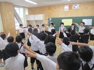 2年生は、生活科で「1年生をむかえよう」という学習をしています。今日は、1年生に学校のいろいろなことを伝える「わくわくなかよし集会」を開きました。1の1と2の1、1の2と2の2に分かれて行いました。2年生は、めあてをもって、クイズやゲーム、学校めぐりなどをしながら、お兄さんお姉さんとして大変よく頑張っていました。1年生も2年生のいうことをよく聞いて行動していました。1年生と2年生は、今後遠足にも一緒に行きます。これからももっともっと仲良くなれるといいですねにっこり
