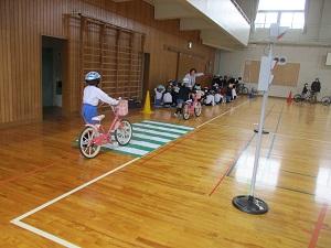 26日はあいにくの雨でしたが、体育館で4年生の自転車教室が行われました。前日から市役所生活安全課の方や見守りボランティアの方に体育館の設置をしていただき、たくさんの子供用自転車を内灘町のサイクリングターミナルからお借りして実施しました。始めに警察署の方から、自転車に関するクイズを交えて歩行者にも車にもなる自転車という乗り物のの特徴や危険箇所の通り方、自転車の点検の仕方を教わりました。いよいよ一人一人が自転車に乗って、コースを走りました。たくさんの子供たちが、最後の感想で「自転車はとても便利だけれど、ルールを守って乗らないととても危険なことになる」と気付いていました。これからもしっかりとヘルメットをかぶり、今日の学びを生かして自転車に乗ってくださいね。また、お忙しい中ご協力いただいた津幡警察署、安全推進隊、かほく市役所、見守りボランティアの皆様、本当にありがとうございました。