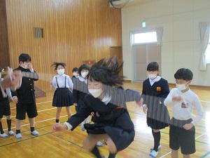 1の1は算数で、繰り上がり繰り下がり計算の活用力をつける「計算ピラミッド」をに取り組んでいました。電子黒板を使って答え合わせをしながら楽しく計算に取り組んでいました。1の2は図工で、校舎にあるいろいろな凸凹の上に紙をのせて擦る「こすりだし(フロッタージュ)」を楽しんでいました。2年生は長休みは長縄で8の字跳び、体育では跳び箱で開脚跳びに挑戦していました。特に跳び箱は、初期の段階なので、腕で体を支えることや両足踏切にポイントを絞って練習していました。3の1は、分数の学習に取り組んでいました。最初は「1を〇等分した▢つ分」という分数の考え方がなかなか身につかなかったのですが、どんどん分数の世界に慣れて、分数の計算などにも取り組んでいます。3の2は体育で、ポートポールをしていました。コートを半分ずつ使って、4つのグループが同時に試合ができるように工夫していました。学期末ではありますが、どのクラスも一生懸命、授業に取り組んでいました。