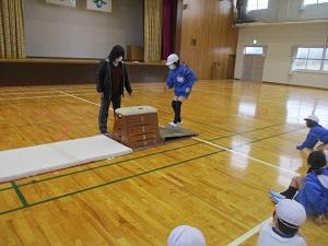 1の1は算数で、繰り上がり繰り下がり計算の活用力をつける「計算ピラミッド」をに取り組んでいました。電子黒板を使って答え合わせをしながら楽しく計算に取り組んでいました。1の2は図工で、校舎にあるいろいろな凸凹の上に紙をのせて擦る「こすりだし(フロッタージュ)」を楽しんでいました。2年生は長休みは長縄で8の字跳び、体育では跳び箱で開脚跳びに挑戦していました。特に跳び箱は、初期の段階なので、腕で体を支えることや両足踏切にポイントを絞って練習していました。3の1は、分数の学習に取り組んでいました。最初は「1を〇等分した▢つ分」という分数の考え方がなかなか身につかなかったのですが、どんどん分数の世界に慣れて、分数の計算などにも取り組んでいます。3の2は体育で、ポートポールをしていました。コートを半分ずつ使って、4つのグループが同時に試合ができるように工夫していました。学期末ではありますが、どのクラスも一生懸命、授業に取り組んでいました。