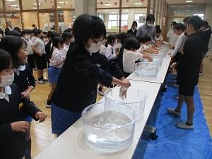 様子を見ていると、やはり握力の強い4年生の絞った水は1・2年生に比べて多く、改めて楽しみながら握力アップできたように感じました。げんきっず委員会の皆さん、ありがとうございました花丸
