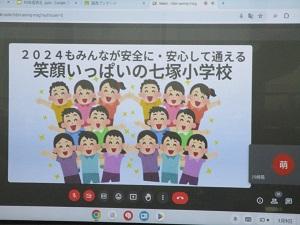 今日の始業式は、各教室でオンラインで行いました。校長先生からは、この地震を乗り切り、乗り越えて、笑顔いっぱいの七塚小学校にしようというお話と、先生方にいつでもどんなことでも相談してほしいというお話がありました。