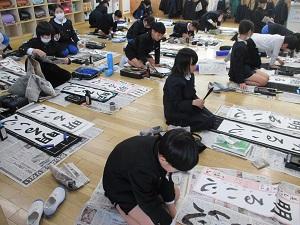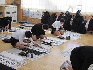 その後、書き初め大会がありました。子供たちは冬休みの練習の成果を発揮して、一生懸命取り組んでいました。明日、明後日の2日間、作品展を行い、金曜日に持ち帰ります。