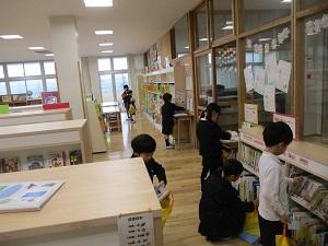 さて、七塚小学校の図書館は玄関横の多目的ホールに面しており、いわば学校のど真ん中に位置しています。子供たちは朝から図書館にやってきくる子が多く、7時45分の図書館が開く時間には、行列ができているくらいです。今日も朝から多くの児童が図書館で過ごしていました。