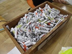 6年生が卒業式で身に着ける飾りの水引を、作りました。