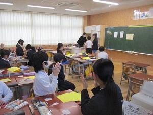 」と6年生の気持ちをリラックスさせてくれました。次第に緊張がほぐれ、手拍子したり、体を揺らしたり、移動して友達と歌ったり、そして楽しみながら声が出るようになってきたりと劇的な変化が見られました