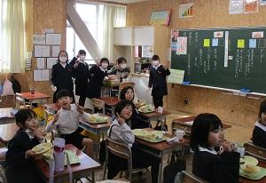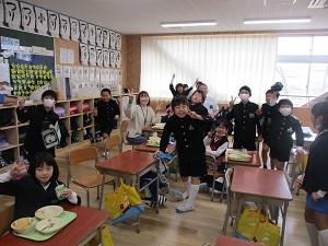 2学期に企画委員会で行った縦割り活動の勝ったチームのご褒美を考えていたところ、6年生から「いろいろな先生方と給食を食べてみたい」という話が出ました。そこで今日は、各クラスにどの先生がやってくるのかを内緒にして担任の先生以外の先生方と給食を食べる企画「ドリーム給食」を実施しました。子供たちは、どの先生がやってくるのか、わくわくしながら待っていましたよ。いつもと違う先生と給食を食べるって、こんなに嬉しいものなのですね。また子供たちの柔軟なアイディアにも驚かされました。これからも子供たち発信の楽しい企画を大切にしながら、もっと笑顔いっぱいの学校をめざしていきたいと思っています。