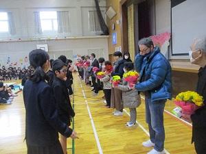 会に先立ち、日ごろからお世話になっているボランティアの皆さんやゲストティーチャー、見守り隊の皆さんをご招待しての「感謝の会」が行われました。今日参加してくださった方には、ささやかなプレゼントとお花鉢をお送りしました。いつも七塚小学校の子どもたちのために、本当にありがとうございます。