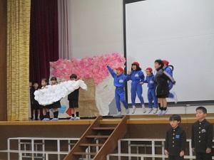 その後、5年生が中心となって「6年生を送る会」が行われました。2年生は音楽劇、3年生は6年生を巻き込んだクイズやダンス、1年生は音読劇、4年生はクイズと劇、5年生は歌とエール、6年生は音楽とダンスでつないだセリフのほとんどない劇…どの学年も本当に趣向を凝らした内容で大変見ごたえがあり、あっという間の2時間でした。4年ぶりに体育館で行われたこともあり、子供たちにとっては本当に感動的な内容だったようです。今日のこの会に向けて、5年生は本当によく頑張ってくれました。どうもありがとうございました。おかげで、6年生だけでなく、たくさんの在校生が涙する姿が見られ、とても感動的な送る会となりました。