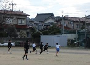 今日は、朝は晴れていましたが、午前中雪がちらついたりまた晴れたりの肌寒い一日でした。それでも朝から七塚っ子たちは元気に運動場でサッカーをしていました。