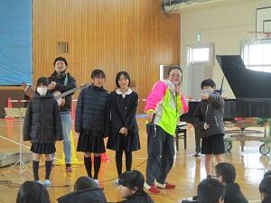 さて今日の3・4限目は、ボイストレーナーの堀江さんとギタリストの高井さんをお招きして、6年生の卒業式の曲の歌唱指導をしていただきました。堀江さんと高井さんは、今日で2回目のご指導で、前回同様、「音楽を楽しむ、自分を表現する」ということをとても大切にしてくださっています。子供たちの「表現したい、歌いたい」という気持ちを引き出し、自分からイメージして、全身で語り掛けるように歌えたらと願い、歌詞のイメージ化を図り、子供たちをリラックスさせ、全身で曲を表現できるように指導してくださいました。終わった後も子供たちと語り合い、子供たちの思いを受け止めてくださったお二人、本当にありがとうございました。