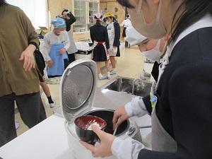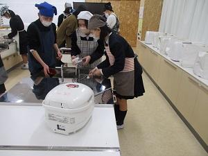 多目的ルームを見ると、図書室がぐっと春らしく模様替えしました。またその奥の調理室からは甘い香りがしてきます。見ると、6年生が炊飯器でチョコレートケーキを作っていました。お家の方のために焼いて持って帰るのだそうです。6年生は卒業に向けて、感謝の心を行動で表しながら、真剣な卒業式練習も続けています。