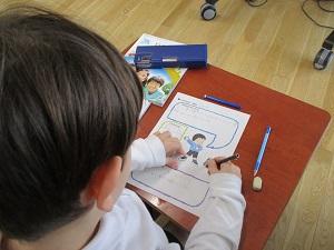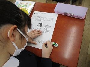 さて、2年生は生活科の学習で「これまでのわたし、これからのわたし」の学習で、自分の生い立ちや今の自分を知り、未来の自分につなげる学習をしています。お家の人から聞いたインタビューをワークシートにまとめ、それをつなげて巻物のようにして仕上げるようです。今日は、今の自分と未来の自分のワークシートを一生懸命仕上げていました。とても素敵な宝物になりそうですね。あと一息で完成です。2年生の皆さん、完成した巻物をぜひお家の人にも見ていただきましょうね