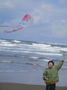 1年生は、生活科の学習「冬を楽しもう」で作った凧を揚げに行きました。学校で揚げたクラスは少し風がなかったものの、海岸で揚げたクラスは風がほどよく吹いていて、とても上手に上げることができました。みんなとっても楽しかったそうです。空に舞い上がる凧のように、1年生の晴々とした笑顔がとてもステキでした