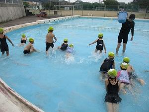 今日の3限目、1年生は小学校に入って初めてのプールでの学習をしました。今日はまだ初めてなので、着替えやシャワーなどお約束ごとがいっぱいでしたが、元気な声がプールいっぱいに広がっていましたよ。準備もこれから上手になってくることでしょう。水遊びを通して、夏を楽しんでくださいね。