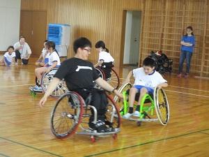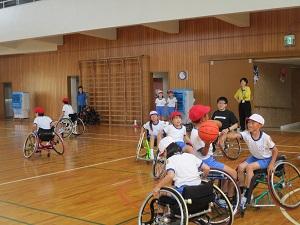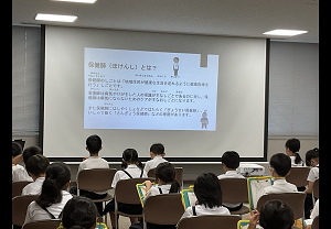 総合的な学習の時間にパラスポーツについて学んでいる4年生。今回は車いすバスケットとボッチャの体験をしました。講師は昨年度からお世話になっている石川県車いすバスケットボールチーム「Jamaney石川」のお二人とかほく市社会福祉協議会の方です。体育館で、ボッチャと車いすバスケットの体験をするクラスと、多目的室で車いすで生活している講師の方の日常生活の様子や質問などをするクラスに分かれて、後で交代するというスタイルで交流しました。はじめはおそるおそる動かしていた車いすも、どんどん上手になり、最後には簡単なバスケットのゲームも体験できました。ボッチャも、最初はただ投げていたボールですが、チームでの駆け引きや相手の玉に当てることもわかってくると、どんどん接戦や逆転が生まれてきて、ゲームの奥深さを学ぶことができました。また、車いすでの運転の仕方や暮らし方を動画で見せていただくことで、できないことも様々な工夫でできるようにしていくことの大切さや、車いすの人たちは不便ではあるけれど決してかわいそうではなくむしろ自分たちよりすごいことがたくさんあると学びました。ご協力いただいた講師の皆さん、本当にありがとうございました。