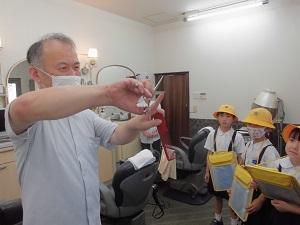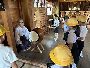 2年生は、生活科の学習で、学校の回りのおすすめの場所を見学し、その場所についてお友達に教える「町たんけん」の学習をしています。木津地区にある子供たちのおすすめの場所として選んだ所は「郵便局、とらや理容店、神明神社、紺谷医院、ゆうゆう薬局、應現寺」で、6つのグループに分かれて見学に行きました。どの場所でも、お仕事の様子を見学し、質問したりインタビューしたりさせていただきました。ご協力いただいた皆様、ありがとうございました。