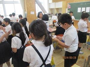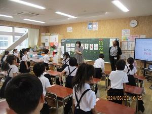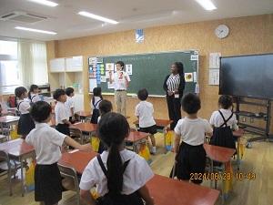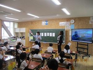 さて、今日は河北台中学校でALTをしているシャミーク先生が、1・2年生の外国語活動にまたまた来てくださいました。2回目となる今回、1年生は動きを表す外国語、2年生は色と形を表す外国語の学習をしました。どちらも工夫したアクティビティーで、体を動かしながらテンポよく学習していました。シャミーク先生、どうもありがとうございました。また、一緒にお勉強させてくださいね。