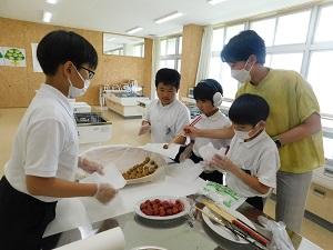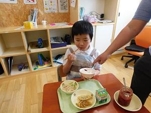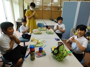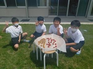 今日はいよいよ試食です、給食の白ごはんにのせて食べるという報告を兼ねて、午前中に校長室に出来上がった梅干しを校長先生に試食してほしいとやってきました。校長先生は梅干しが大好きだそうで、1個丸ごと食べると、みんなは「うわぁぁぁ。大丈夫~??」と心配していました。そしてお昼にはみんなで楽しく給食を食べました。いつもは、交流学級に入って食べるのですが、今日はみんなでほっとルームで食べました。ちょっと梅が苦手な子も、頑張って一口はたべることができましたよ。とっても楽しいランチタイムでした。