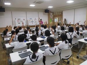 新学習指導要領では、5年生の家庭科の学習に、消費者教育が取り入れられています。そこで市の消費者センターから講師の方をお招きし、消費者講座を行いました。これからの社会では、ネットで買い物をしたりカードで買い物をしたりすることも増えてきますし、子供たちの身の回りでもゲームによる課金等のトラブルが後を絶ちません。夏休みには、特にそういったトラブルも起こりやすいと言われています。とても便利な世の中ですが、逆に失敗や事件に巻き込まれる危険性もあります。今回の学習で便利さと危険性についてしっかりとシミュレーションし、賢い消費者になってほしいと願っています。ご家庭でもこの機会に、お金の大切さやお家でのルールを話し合ってみてほしいと感じています。