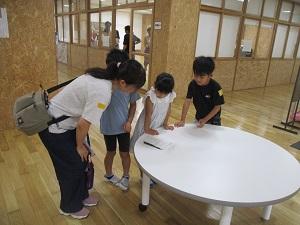 3つのグループに分かれて、それぞれのコーナーを30分ずつ親子で回ります。3つのコーナーとは、「宝探し」「体力テスト」「モルック」です。お父さん、お母さんと一緒に、今年は室内で熱中症に配慮しながら、体を使って、頭も使って楽しみました。お父さん、お母さんのかっこいい姿も、とてもステキでした。親子で和気あいあい、笑顔いっぱいのイベント、参加いただいた皆さん、そしてお世話いただいた執行部の皆さん、本当にありがとうございました。