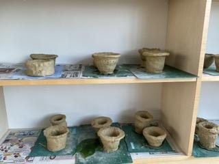 弥生土器を作る体験をしました。縄文時代や弥生時代の話を聞いた後、土器の作り方を教えていただきながら作りました。普段から触っている粘土とは感触が少し違い、より土に近い感じがしました。みんなで楽しく作ることができました。しばらく乾かした後、9月に焼いて完成させます。