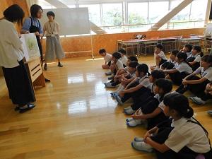 長休みに図書ボランティアの方の読み聞かせがありました。
