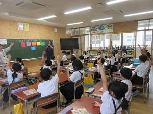 今年度、1・2年生の外国語活動に、ジャマイカ出身のシャミーク先生に来ていただいています。