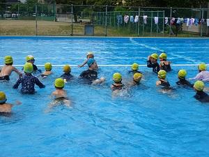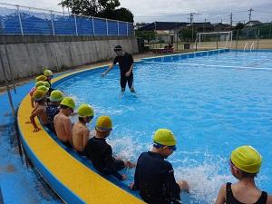 クラブパレットの方に、学年に応じた楽しい運動を通して、水に慣れたり、浮いたり息継ぎをしたりする方法を教えていただきました。