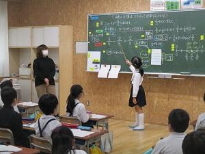1の1は算数で、繰り上がり繰り下がり計算の活用力をつける「計算ピラミッド」をに取り組んでいました。電子黒板を使って答え合わせをしながら楽しく計算に取り組んでいました。1の2は図工で、校舎にあるいろいろな凸凹の上に紙をのせて擦る「こすりだし(フロッタージュ)」を楽しんでいました。2年生は長休みは長縄で8の字跳び、体育では跳び箱で開脚跳びに挑戦していました。特に跳び箱は、初期の段階なので、腕で体を支えることや両足踏切にポイントを絞って練習していました。3の1は、分数の学習に取り組んでいました。最初は「1を〇等分した▢つ分」という分数の考え方がなかなか身につかなかったのですが、どんどん分数の世界に慣れて、分数の計算などにも取り組んでいます。3の2は体育で、ポートポールをしていました。コートを半分ずつ使って、4つのグループが同時に試合ができるように工夫していました。学期末ではありますが、どのクラスも一生懸命、授業に取り組んでいました。