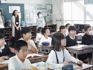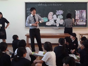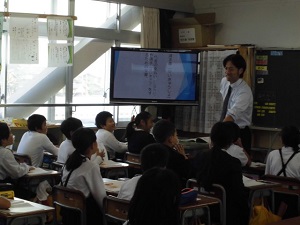 三重県伊賀市の教育委員会の皆様が、本校を視察においでました。学力が向上していることやコミスク事業についての視察です。子ども達が、落ち着いて学習している様子やさわやかな挨拶が気持ちよかったと、たくさんお褒めの言葉をいただきました。他県の方々に授業の様子を参観いただき、本校にとってもよい機会となりました。ありがとうございました。